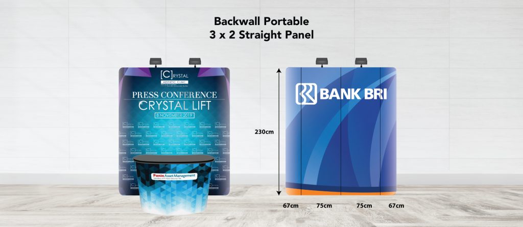 Backwall 3×2 Straight Panel adalah sistem backdrop modular dengan bentuk lurus (straight) yang memberikan tampilan bersih dan profesional. Cocok untuk berbagai keperluan promosi, seperti :